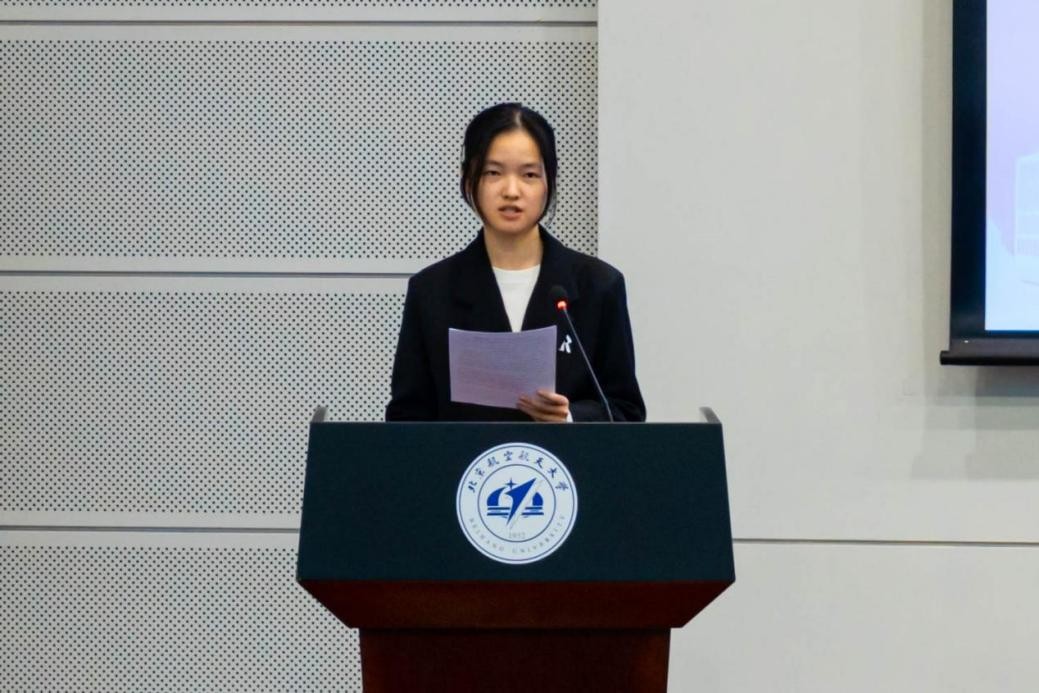 随后,北航校学生会代表王祉毓同学致辞。王祉毓同学总结陈述了过去一年仪器科学与光电工程学院学生会的工作,对相关工作表示认可,同时也传达了校学生会对仪器科学与光电工程学院新一届学生会工作的支持和期待。